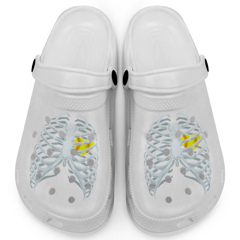 Funny Softbal Heart Skeleton Rib Cage Halloween Clogs