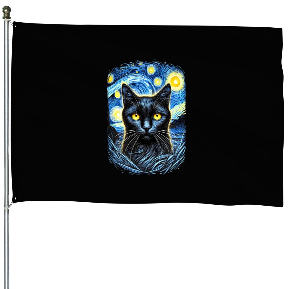 Buy eye-catching Funny Starry Night Black Cat Van Gogh Art Cat House Flags or see more House Flags products at Printblur shop now to explore many surprises from our shop!