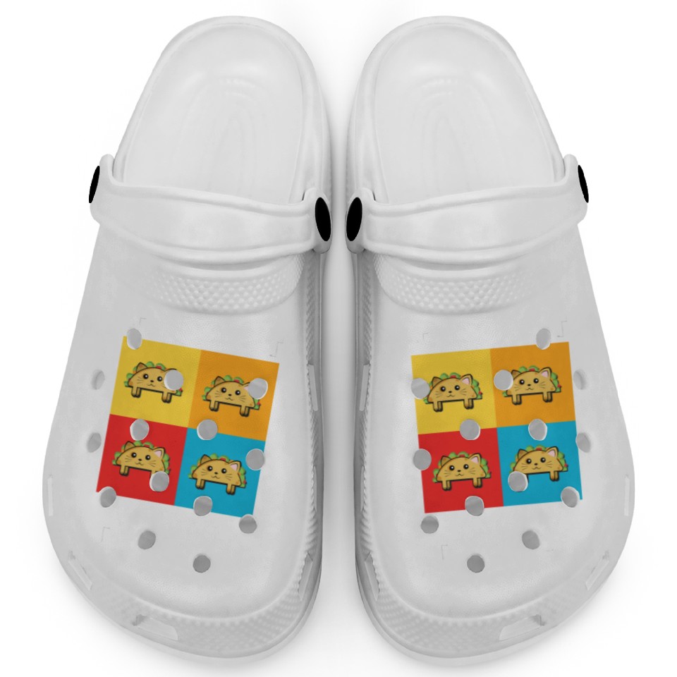 The product unique design you searched for is Funny Taco Cat Tacocat Spelled Backwards Palindrom Clogs For Kids WHITE belong theme Clogs at Printblur