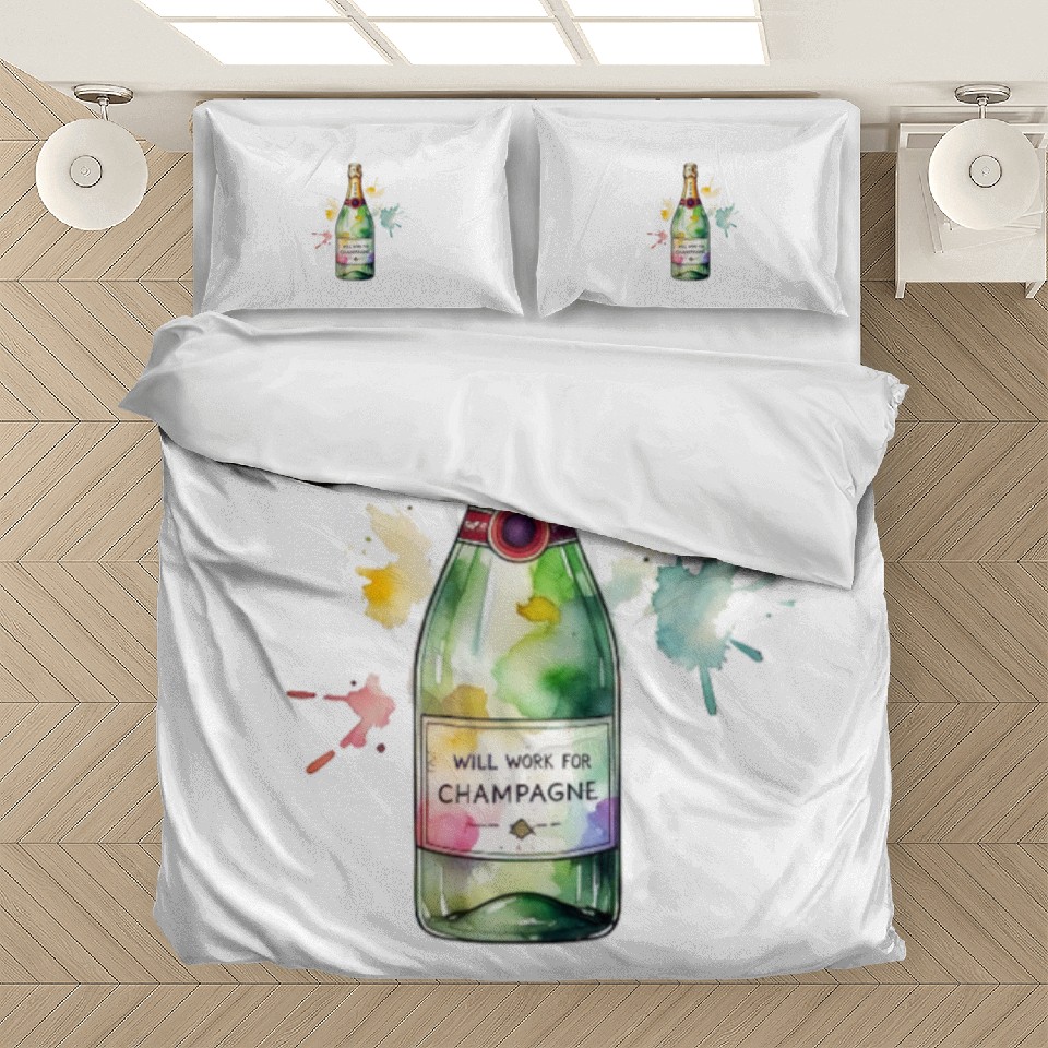 You are viewing an exclusive and elegant product Funny Will Work For Champagne Bubbly Wedding Bride Bedding Sets For WHITE belong theme Bedding Sets at Printblur