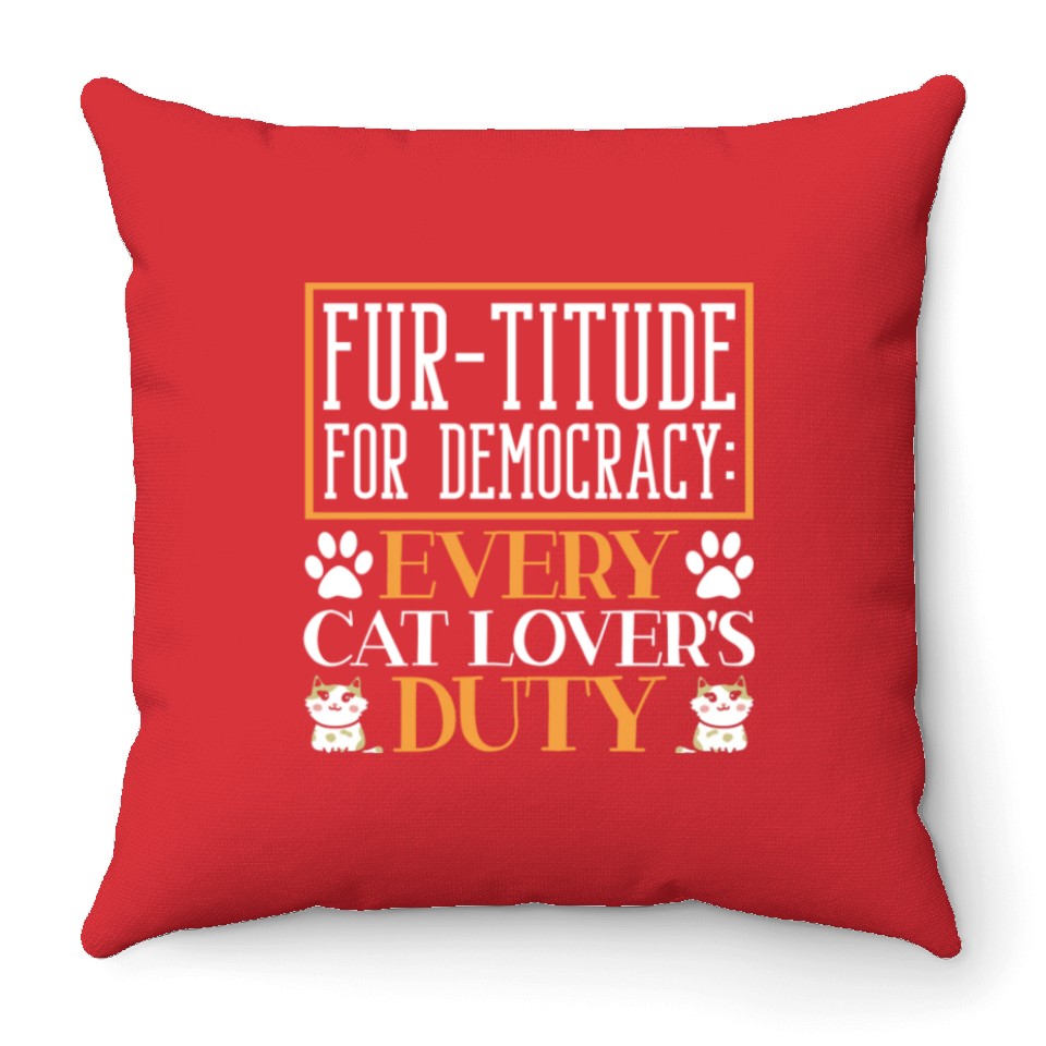 Buy eye-catching Fur-titude For Democracy Every Cat Lover's Duty Throw Pillows or see more Throw Pillows products at Printblur shop now to explore many surprises from our shop!