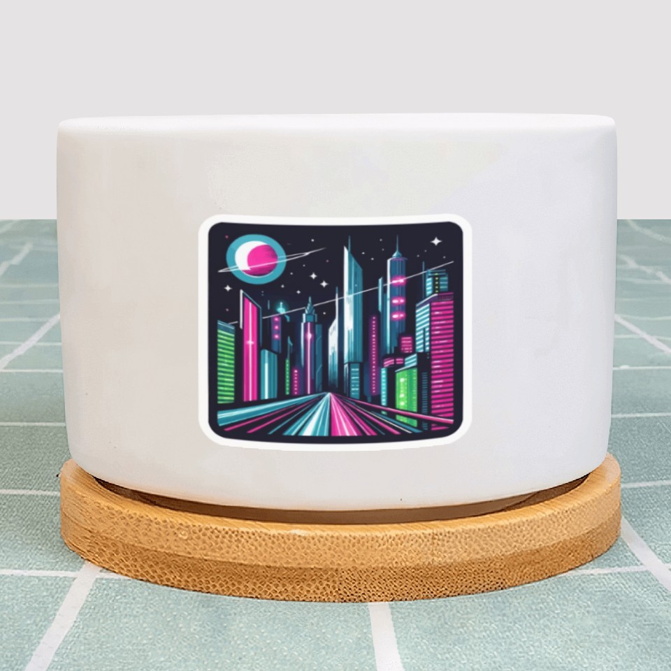 Futuristic cityscape Retro Synthwave Cyberpunk Plant Pots