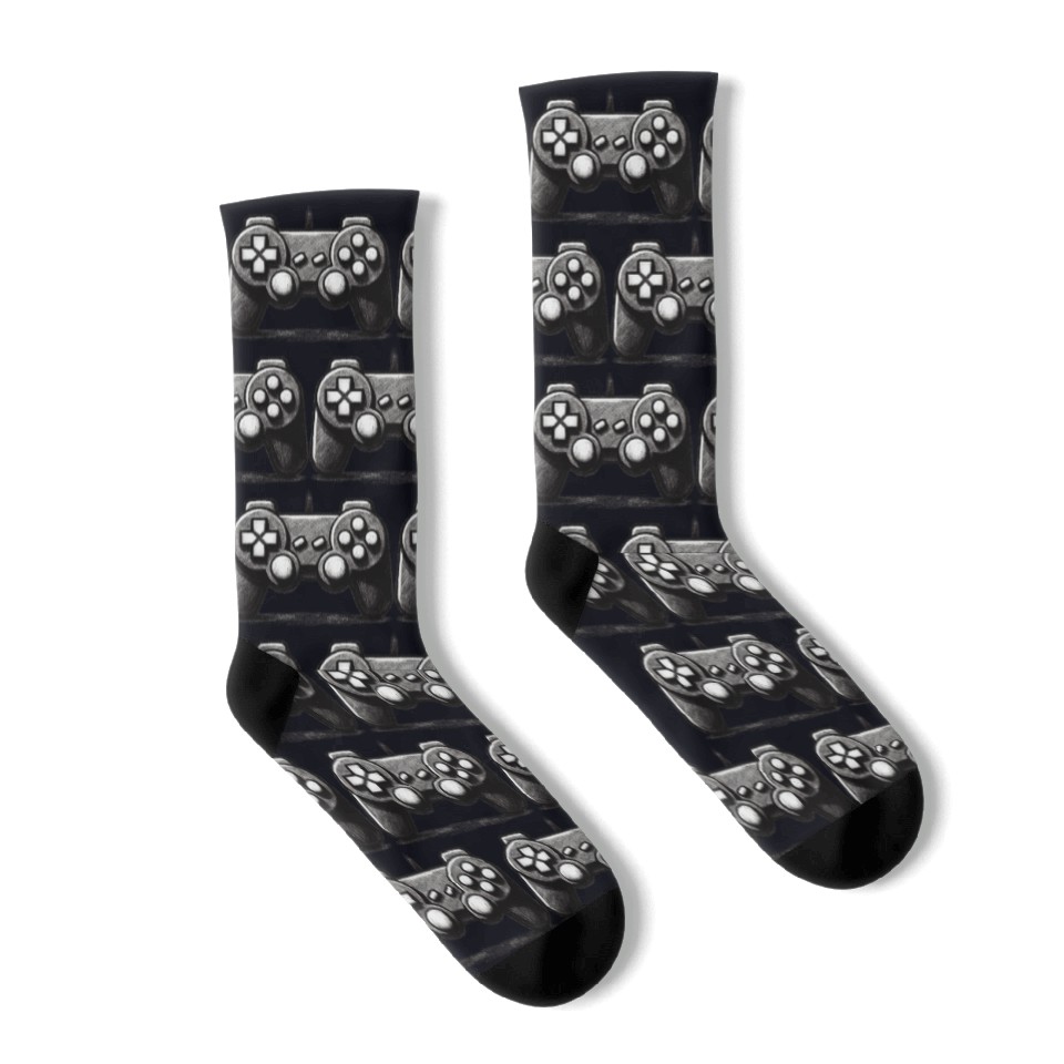 You are shopping for a stunning and trendy product Gamer Controller Cartoon Charcoal Gaming Art 1 Socks For Black belong theme Socks at Printblur