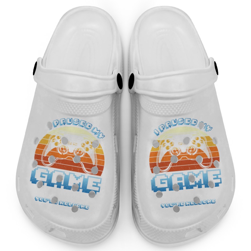 You are viewing an exclusive and elegant product Gamer I Paused my Game to be Here You're Welcome Clogs For Kids WHITE belong theme Clogs at Printblur