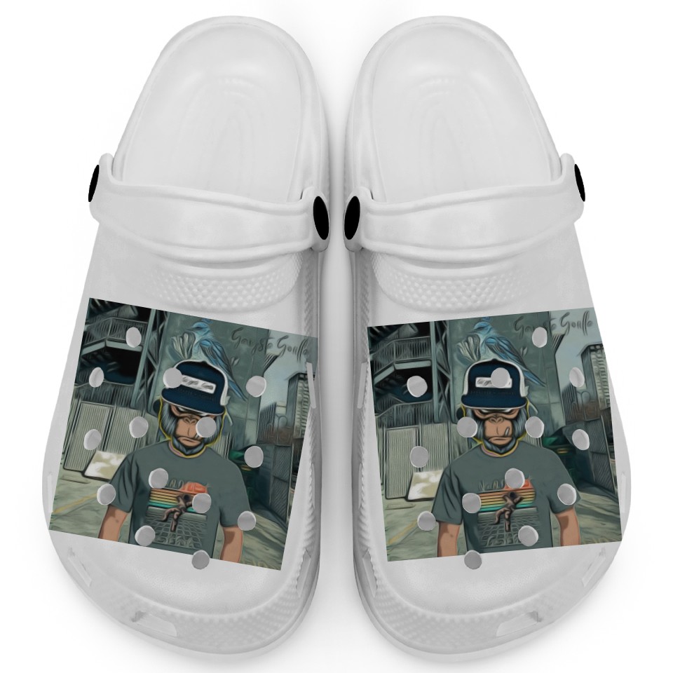 You are shopping for a stunning and trendy product Gangsta Gorilla-Silverback Swanson Gorilla Wear Clogs For Kids WHITE belong theme Clogs at Printblur