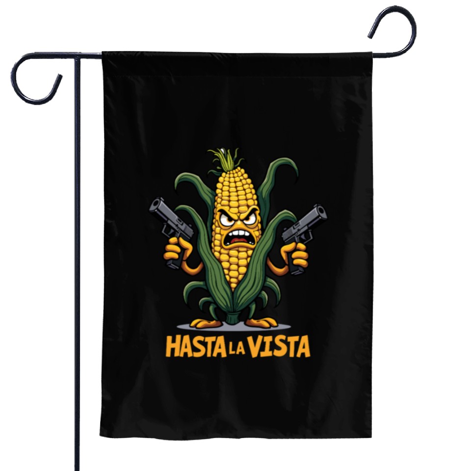 Shop for attractive Gangster Corn Hasta La Vista - Corn on the cob Garden Flags or see more Garden Flags products on https://printblur.com right now!