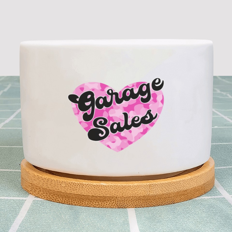 Garage Sales pink camo heart Plant Pots