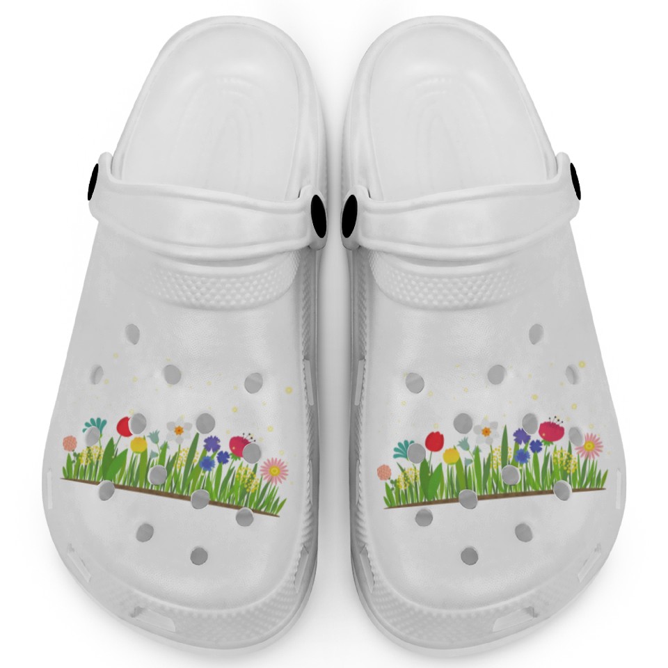 You're taking a peek at the product Garden of Firefly Clogs For Kids WHITE belong theme Clogs at Printblur
