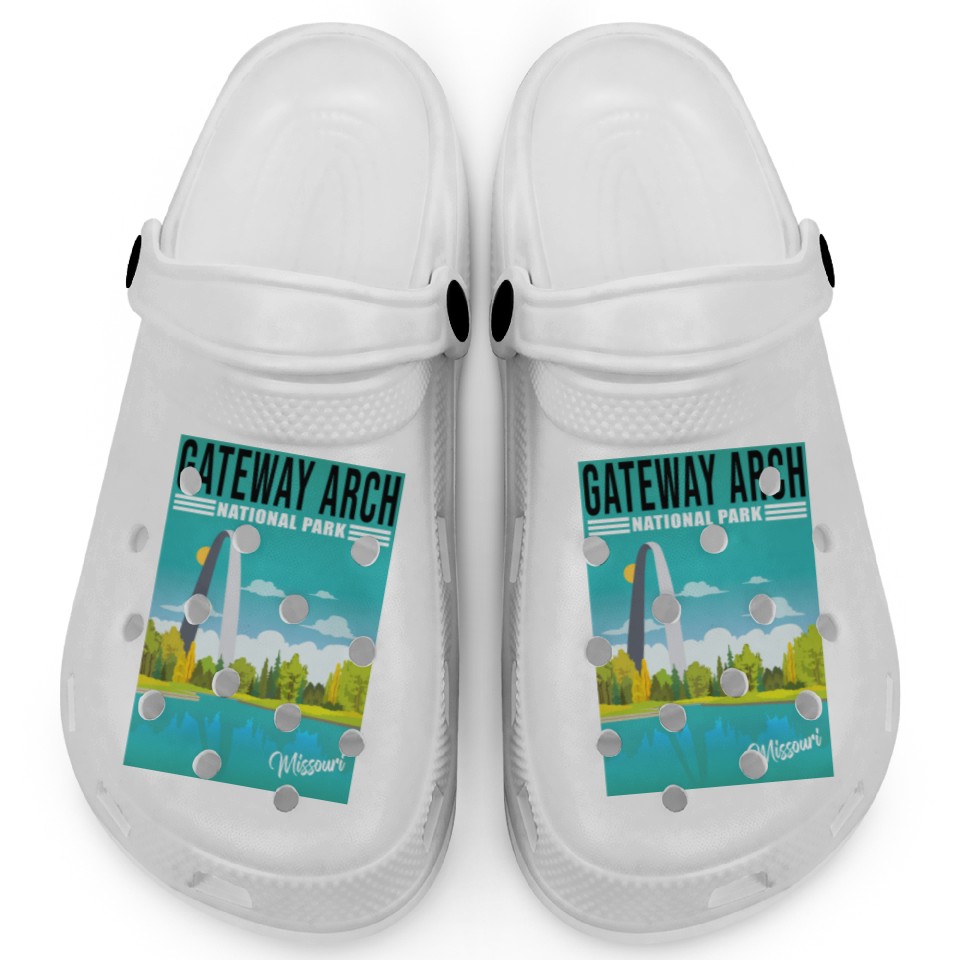 You're taking a peek at the product Gateway Arch National Park Missouri, St Louis Clogs For Kids WHITE belong theme Clogs at Printblur