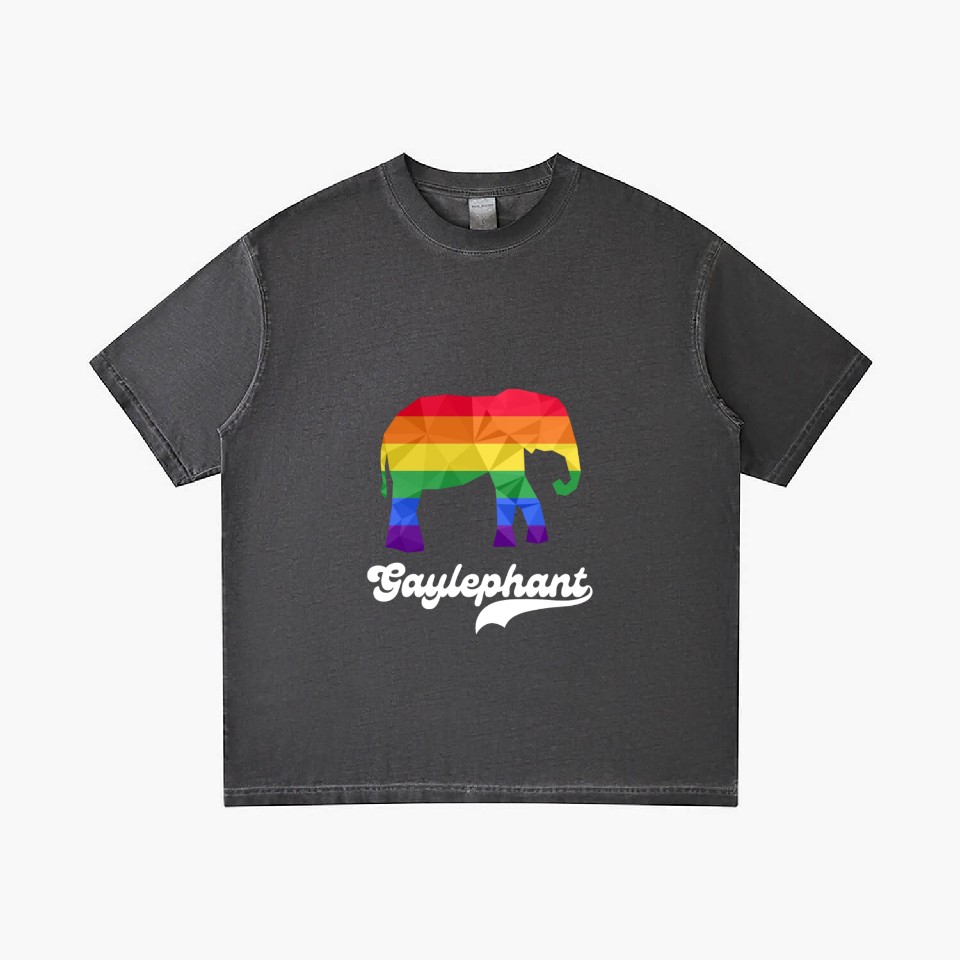 You're looking at the eye-catching product Gay Elephant LGBTQ Rainbow Flag Gradient T Shirts For Men Washed Black belong theme Gradient T-Shirts at Printblur