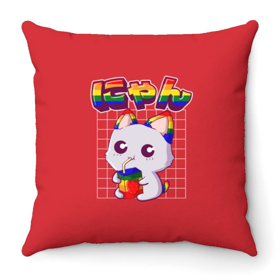 Buy eye-catching Gay Pride Kawaii Cat Strawberry Milk Rainbow Flag Throw Pillows or see more Throw Pillows products at Printblur shop now to explore many surprises from our shop!