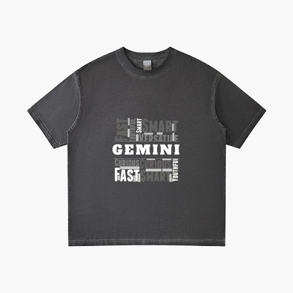 You are seeing a unique and impressive product Gemini Zodiac Star Sign Word Cloud Square Monochro Gradient T Shirts For Men Washed Black belong theme Gradient T-Shirts at Printblur