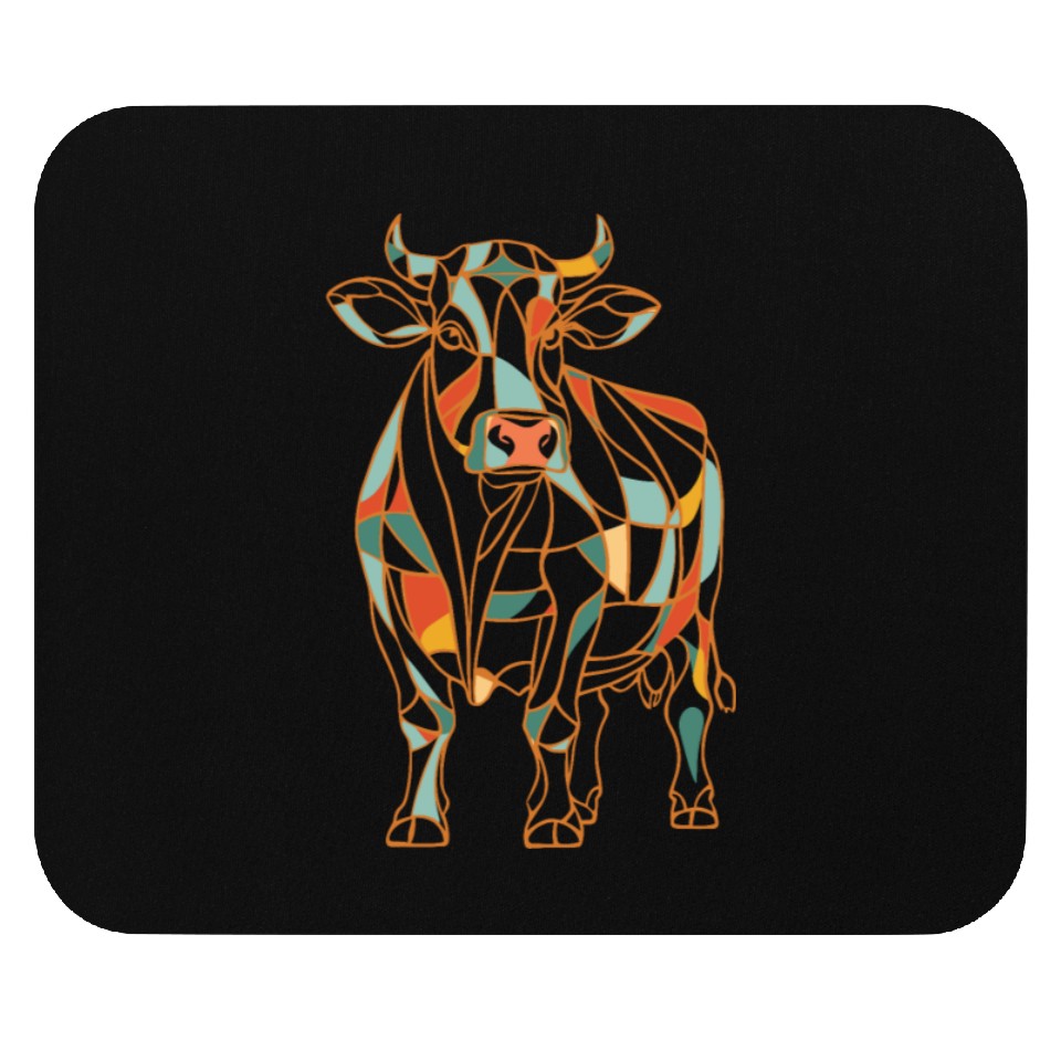 You're searching for a one-of-a-kind product Geometric Farm Animal Graphic Vibrant Cow Mouse Pads For Black belong theme Mouse Pads at Printblur