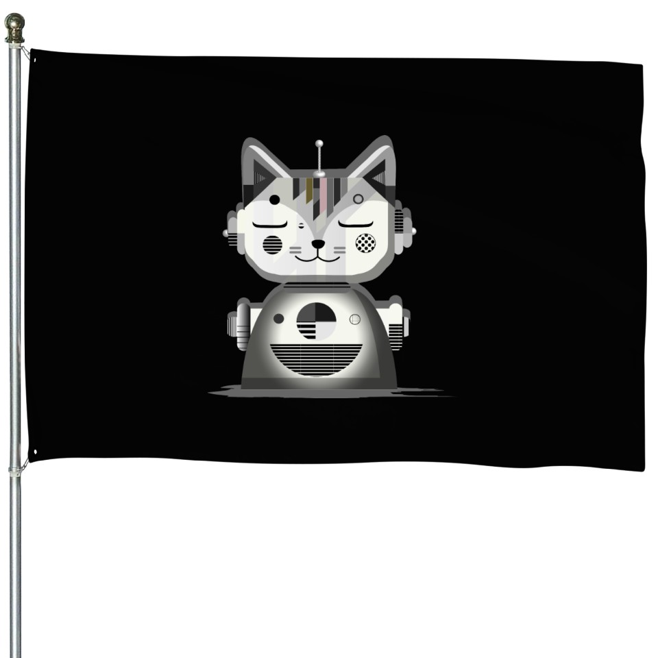 You're taking a peek at the product Geometric Robot Cat - Creative Illustration House Flags For Black belong theme House Flags at Printblur