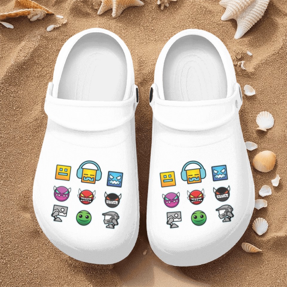You're taking a peek at the product geometry dash insane Nurse Clogs For Men WHITE belong theme Nurse Clogs at Printblur