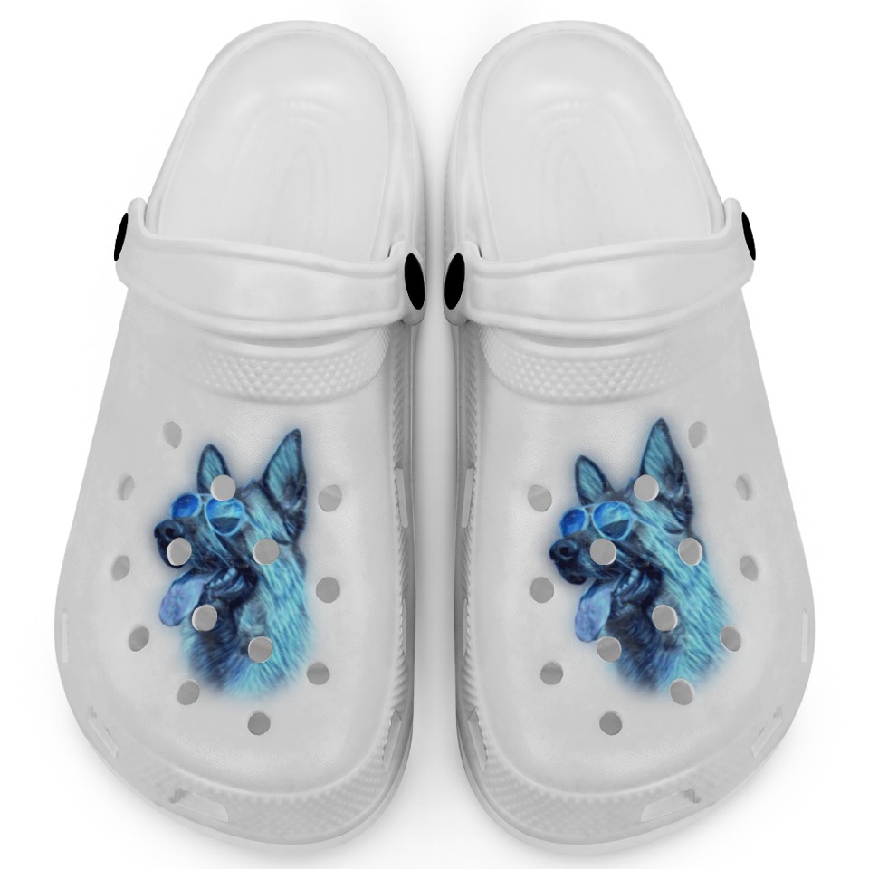 The product unique design you searched for is German Shepherd Colorful Neon Dog Sunglasses Clogs For Kids WHITE belong theme Clogs at Printblur