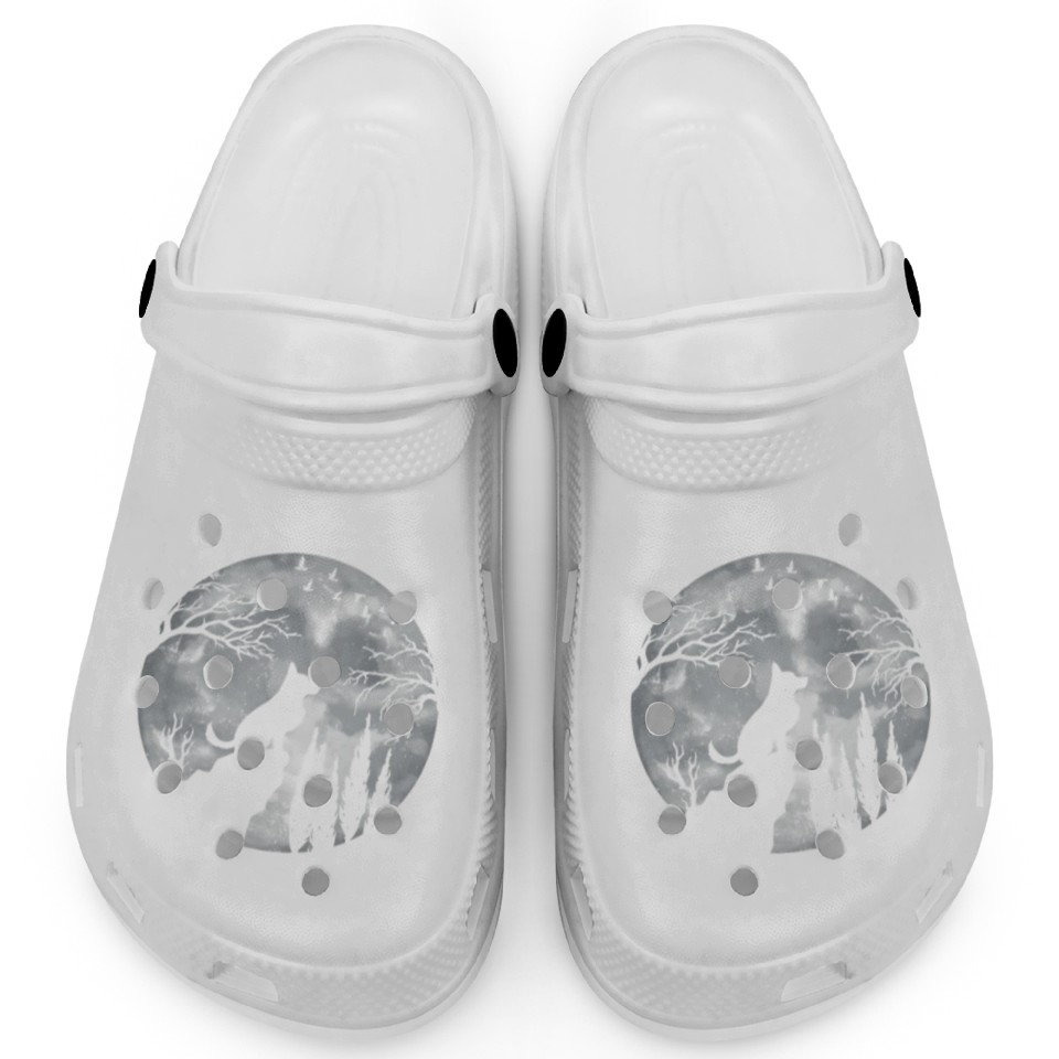 You're taking a peek at the product German Shepherd Dog Full Moon At Night German Shep Clogs For Kids WHITE belong theme Clogs at Printblur