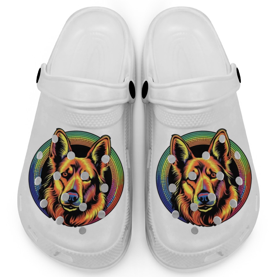 You are viewing an exclusive and elegant product German Shepherd Funny Dog Halloween Costume Trick Clogs For Kids WHITE belong theme Clogs at Printblur