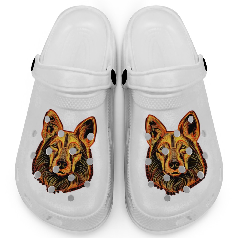 You're looking at the eye-catching product German Shepherd Funny Dog Street Art Comic Pet Clogs For Kids WHITE belong theme Clogs at Printblur