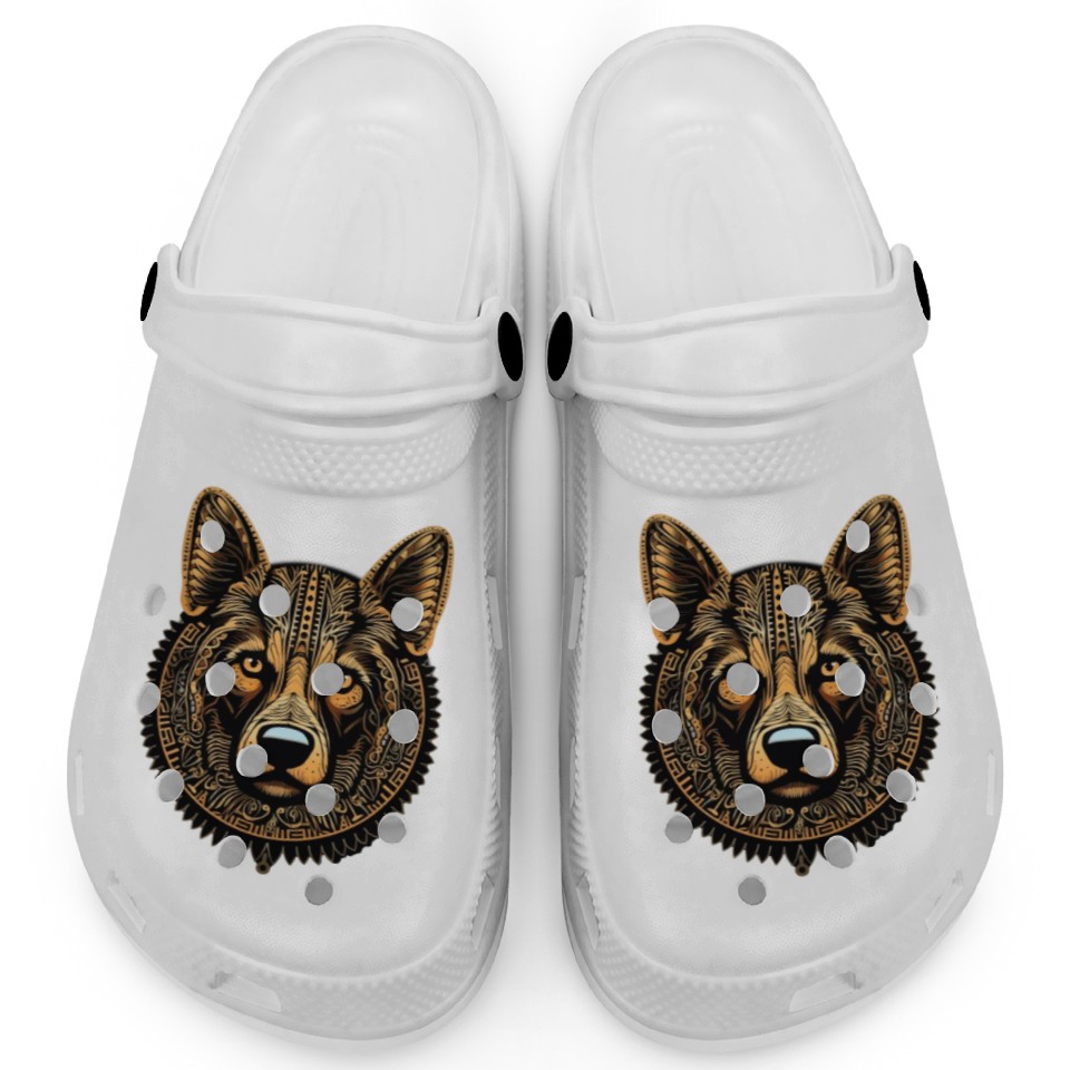 You're taking a peek at the product German Shepherd Funny Dog Street Art Comic Pet Clogs For Kids WHITE belong theme Clogs at Printblur
