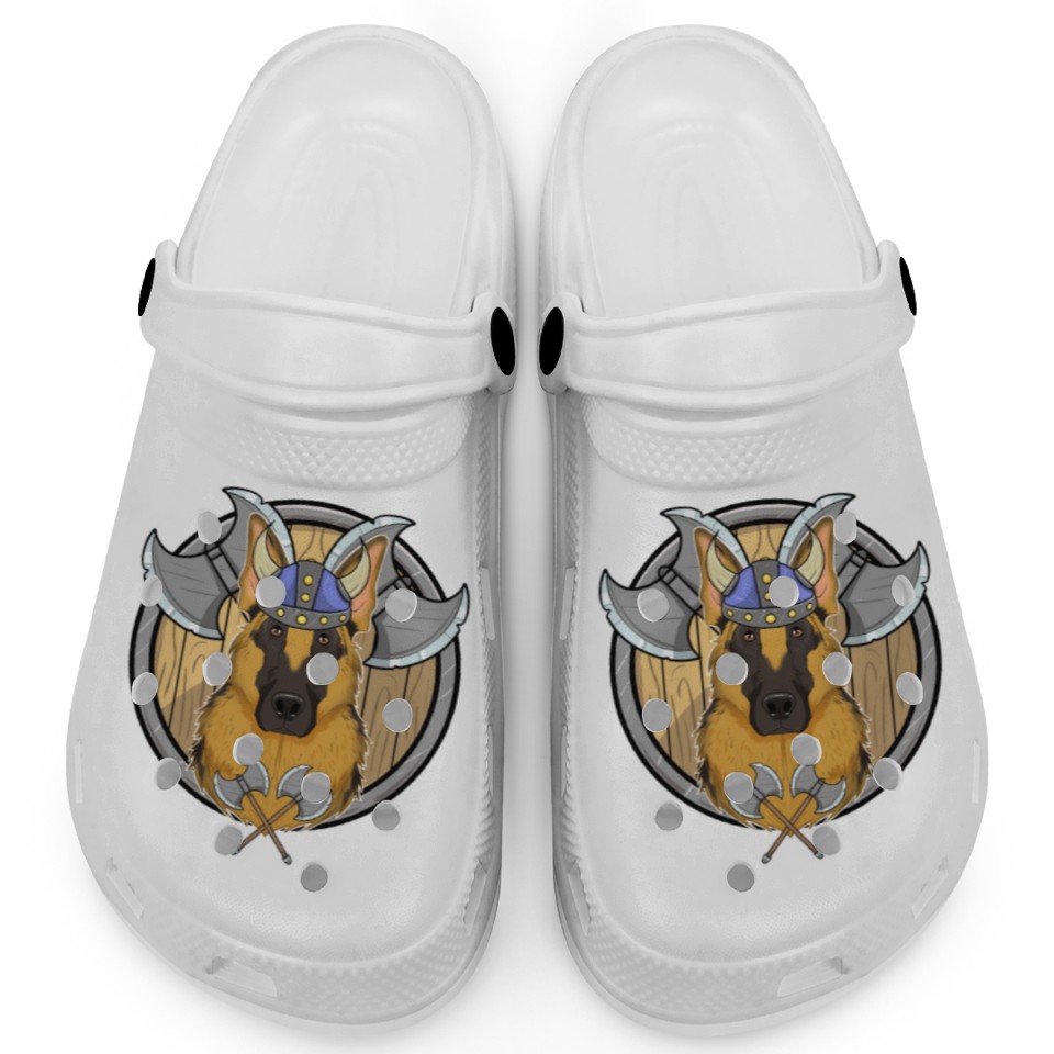 You are shopping for a stunning and trendy product German Shepherd I Valhalla I Viking Clogs For Kids WHITE belong theme Clogs at Printblur