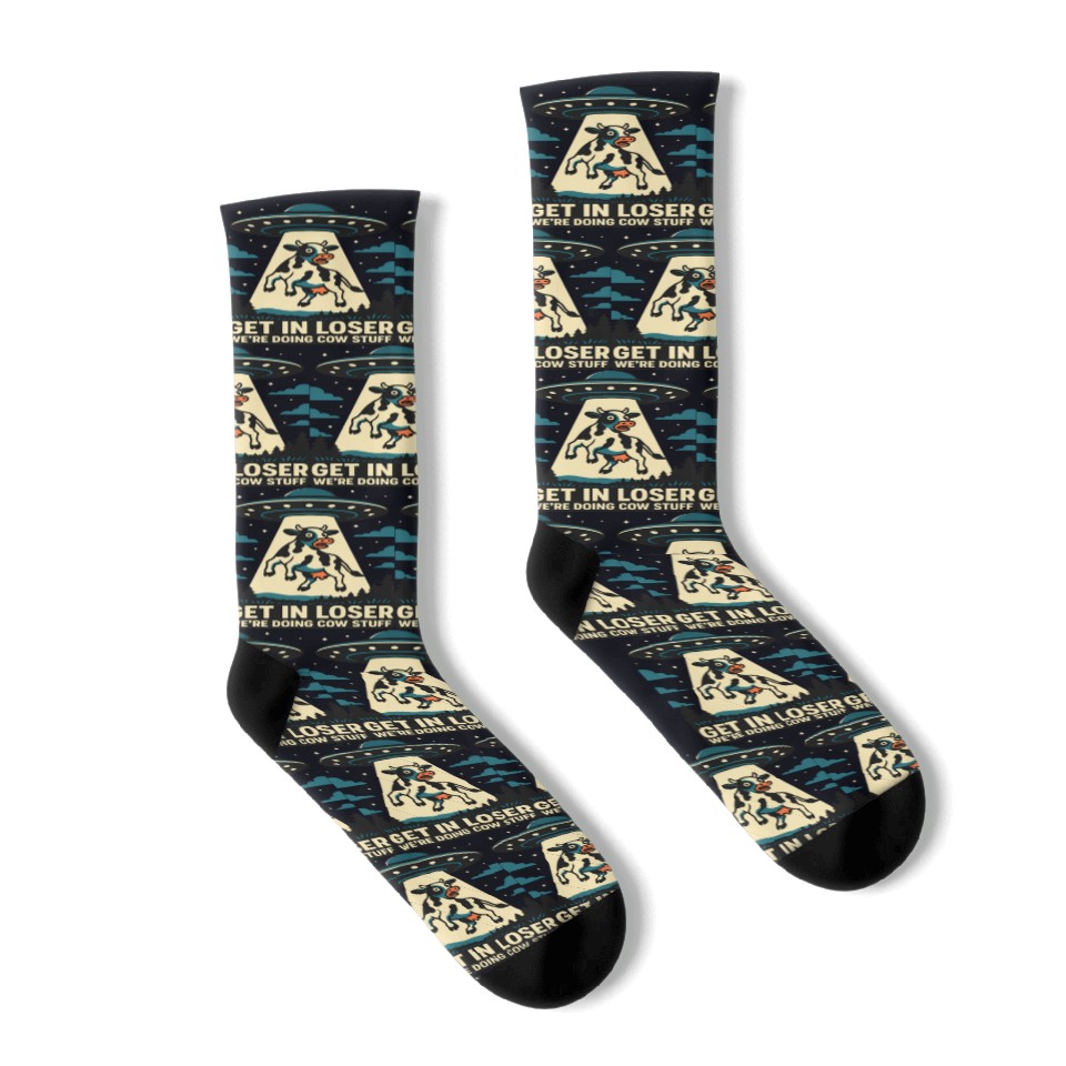 Buy stunning Get in Loser, We’re Doing Cow Stuf Socks or see more Socks products at Printblur right now to receive many amazing discounts!