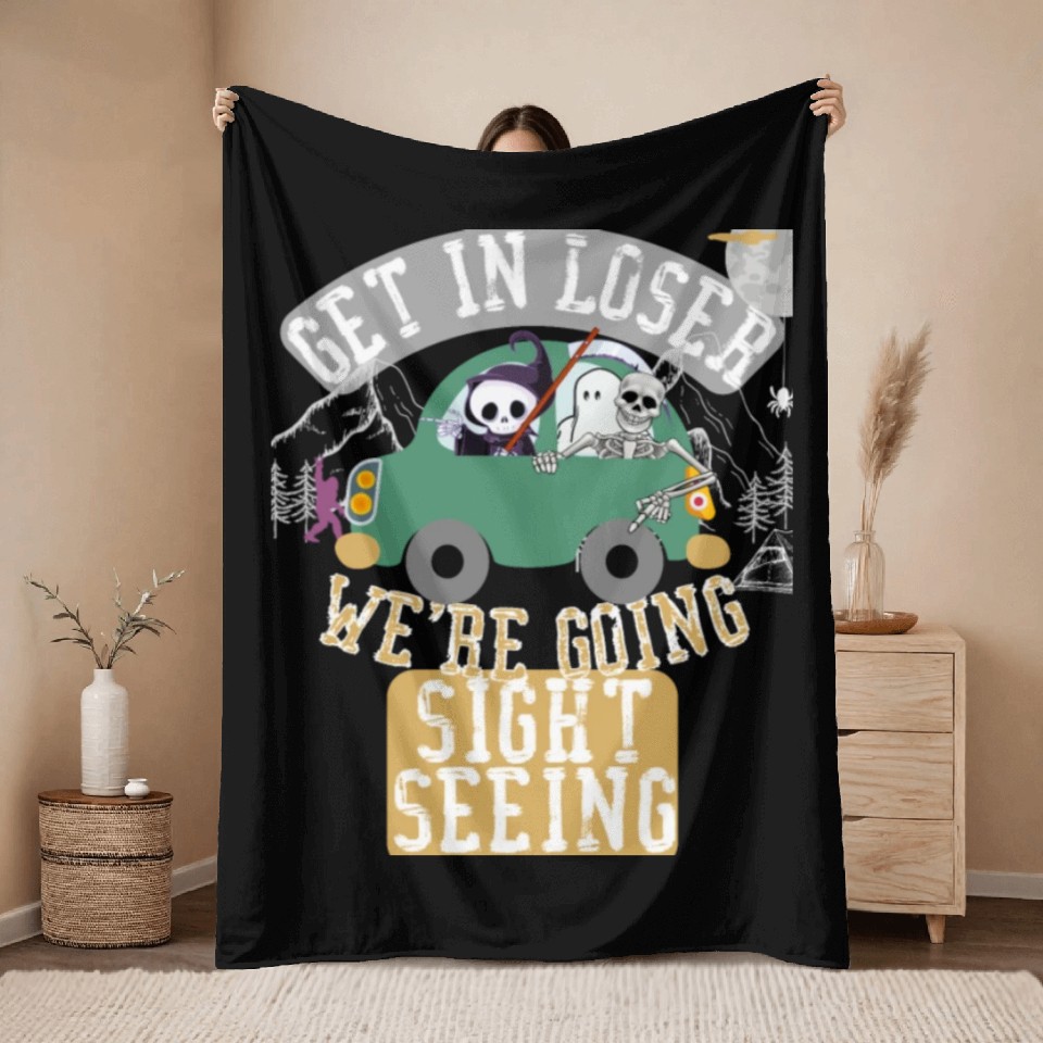 Buy eye-catching Get in loser we're going sightseeing Throw Blankets or see more Throw Blankets products at Printblur shop now to explore many surprises from our shop!