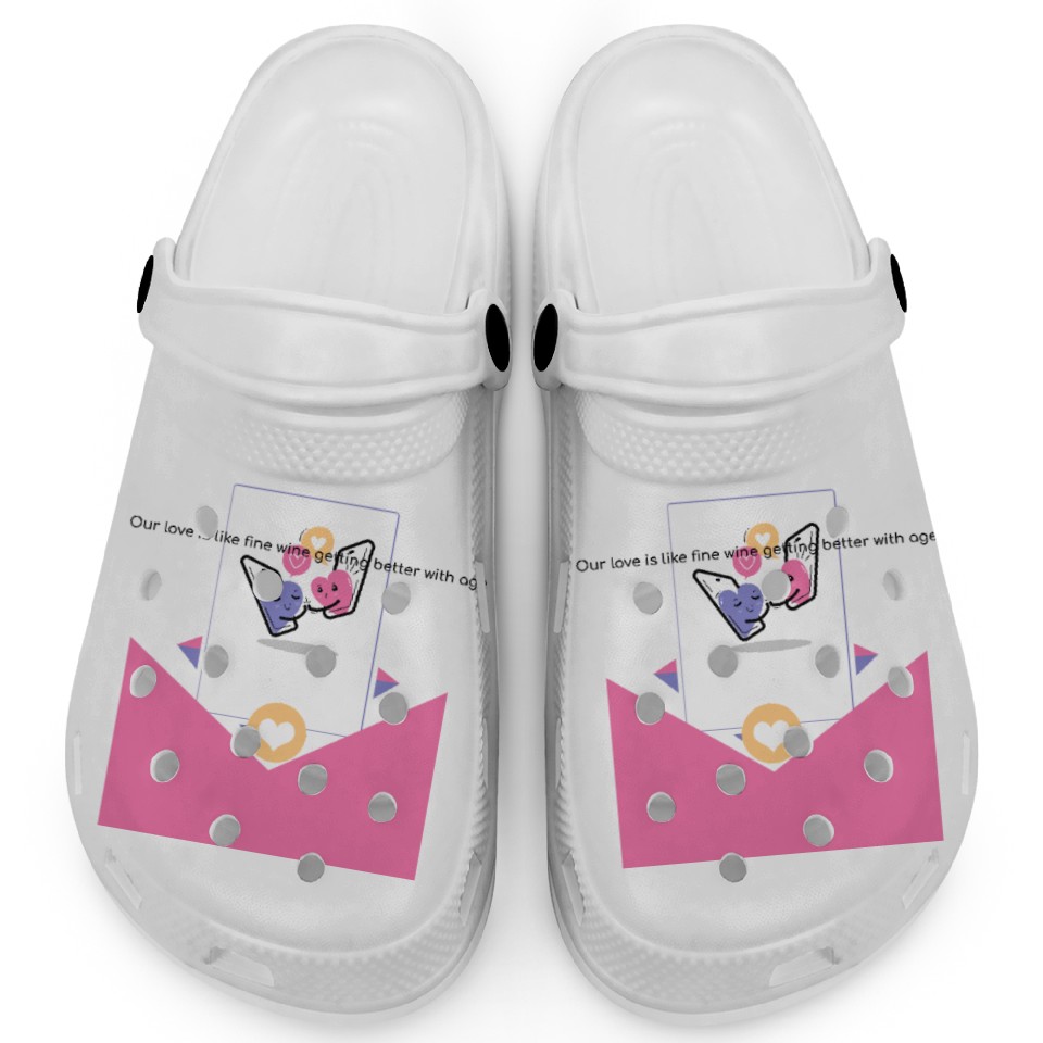 You're looking at the eye-catching product Getting Better with Age Valentine Day Clogs For Kids WHITE belong theme Clogs at Printblur
