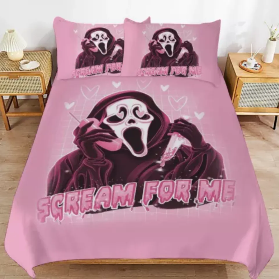Shop for attractive Ghostface Calling Scream For Me Happy Valentine's Day Pink Themed Bedding Set or see more Bedding Sets products on https://printblur.com right now!