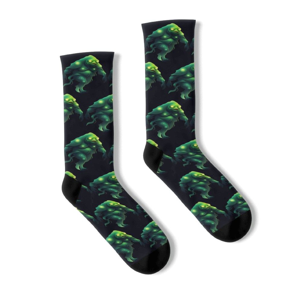You're looking at the eye-catching product Giant Green Monster Creature Socks For Black belong theme Socks at Printblur