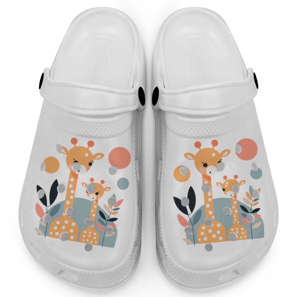 The item hot trend you're looking at is Giraffe Family Clogs For Kids WHITE belong theme Clogs at Printblur