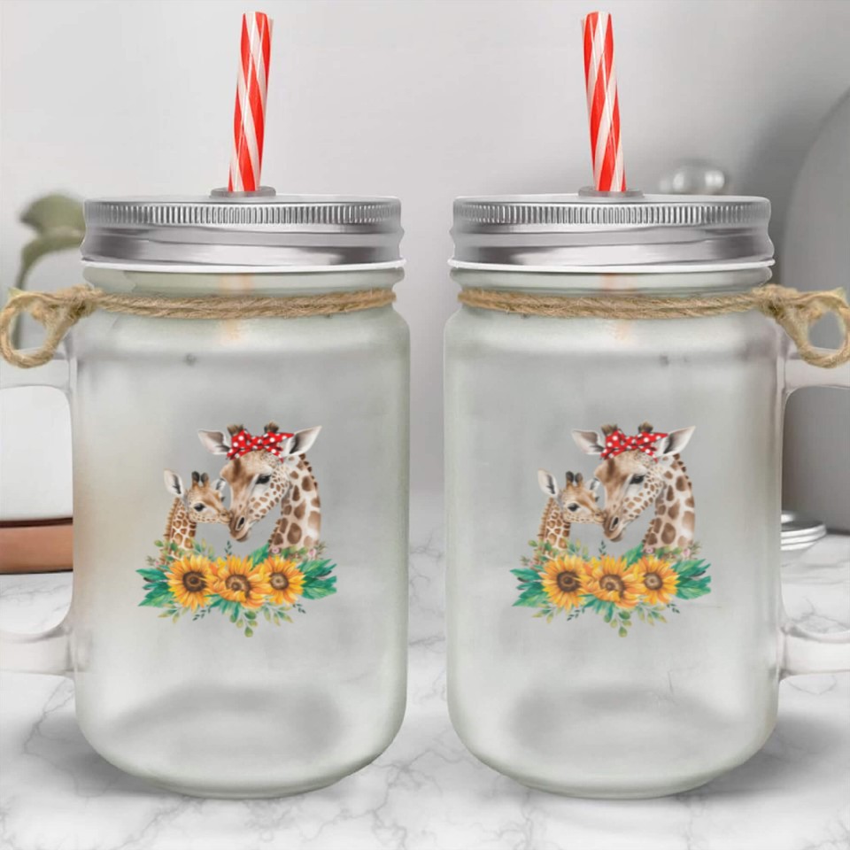 Buy eye-catching Giraffe Mom Baby Animals Sunflower African Mason Jar Cups or see more Mason Jar Cups products at Printblur shop now to explore many surprises from our shop!