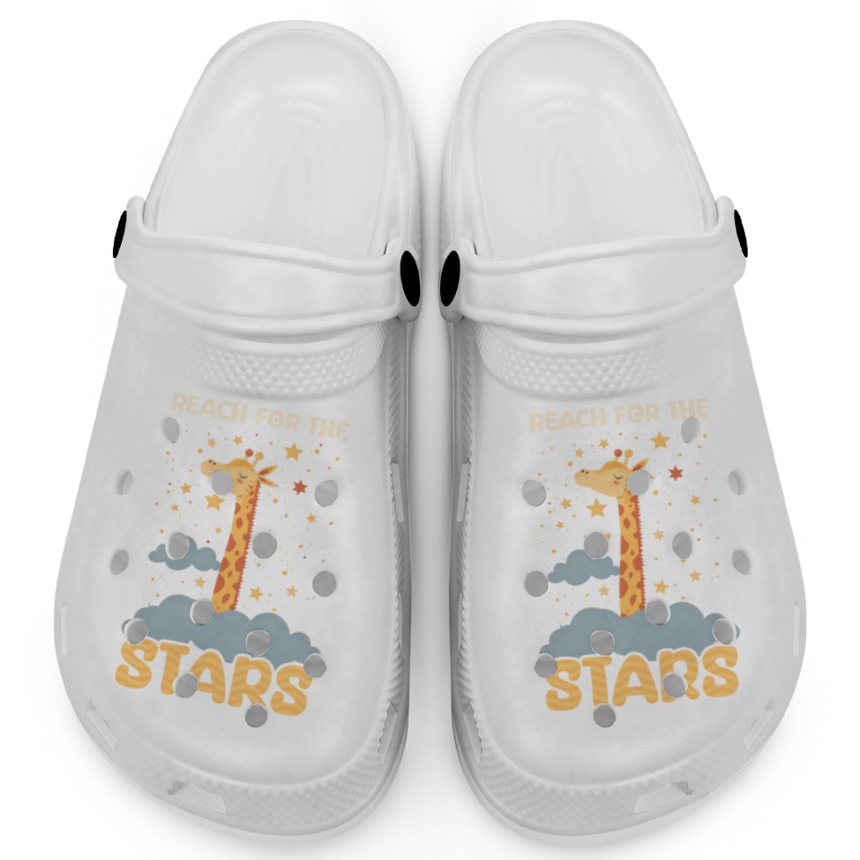You are viewing one of the trendiest products Giraffe Reach For The Stars Clogs For Kids WHITE belong theme Clogs at Printblur