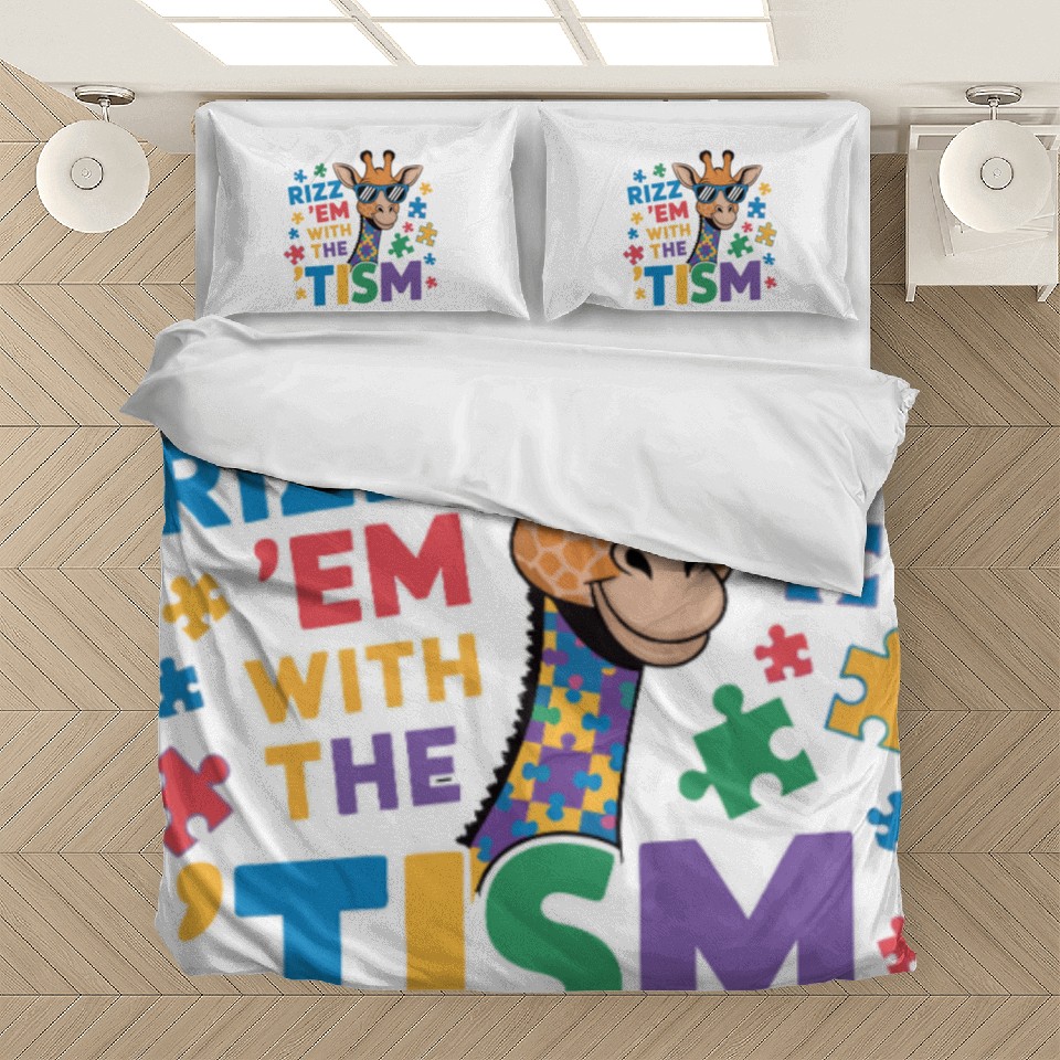 You are viewing an exclusive and elegant product Giraffe with Puzzle Pieces and Sunglasses Bedding Sets For WHITE belong theme Bedding Sets at Printblur