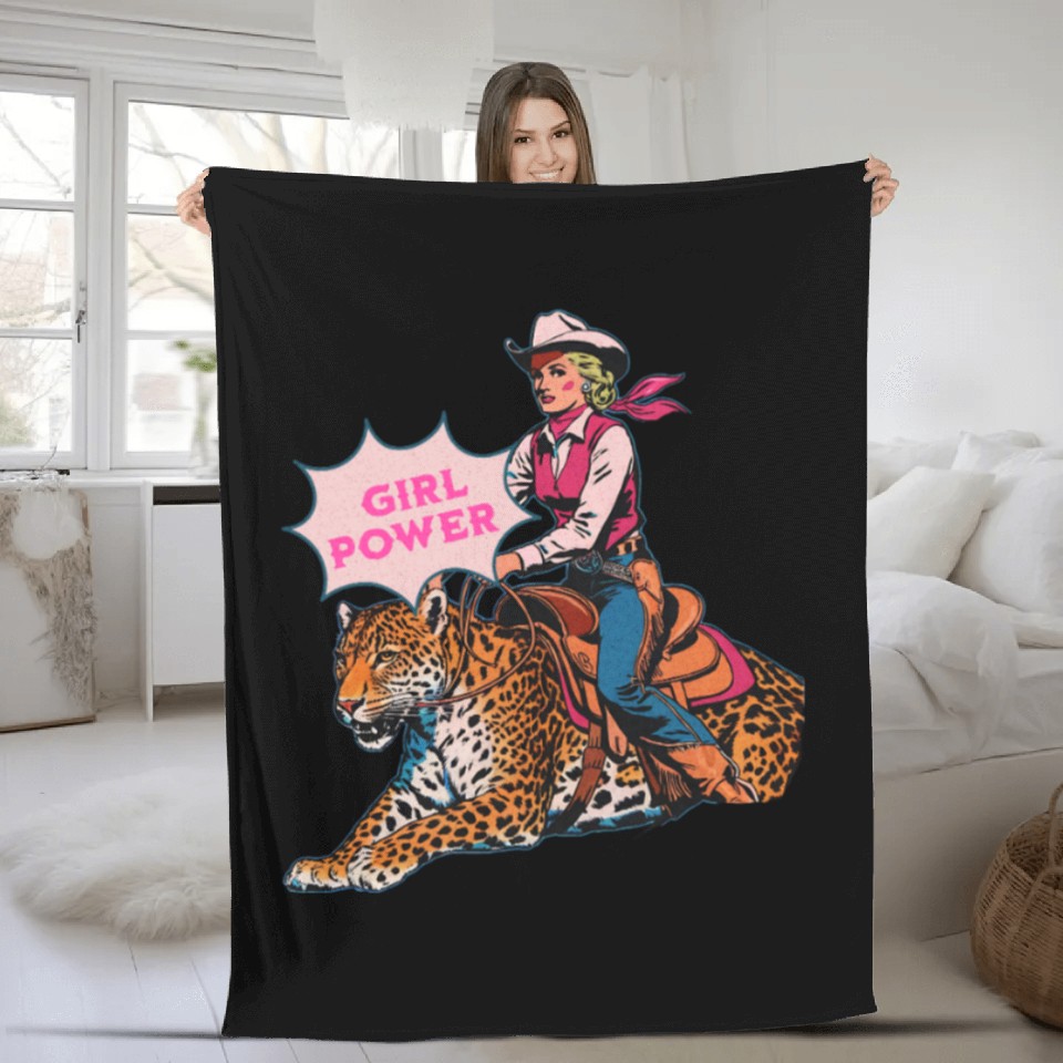 Buy eye-catching Girl Power Cowgirl Riding a Leopard Western Fleece Blankets or see more Fleece Blankets products at Printblur shop now to explore many surprises from our shop!