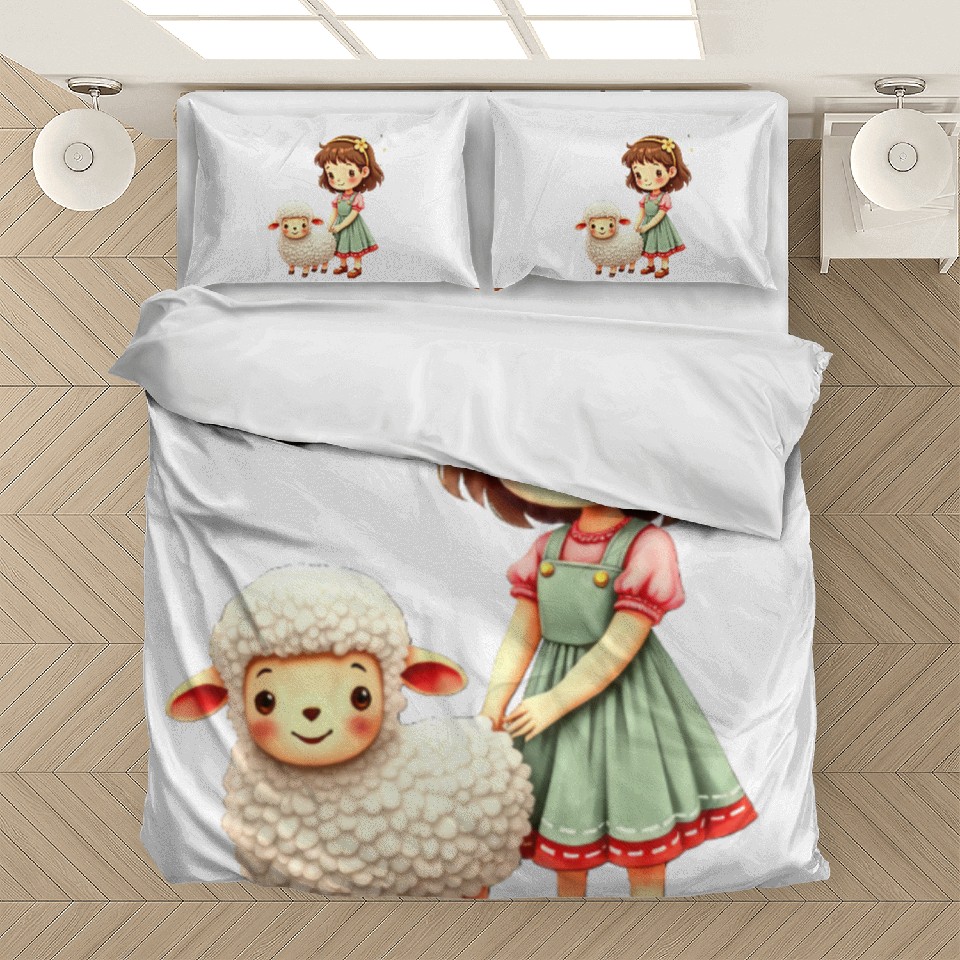 Buy eye-catching Girl with Cute Lamb Bedding Sets or see more Bedding Sets products at Printblur shop now to explore many surprises from our shop!