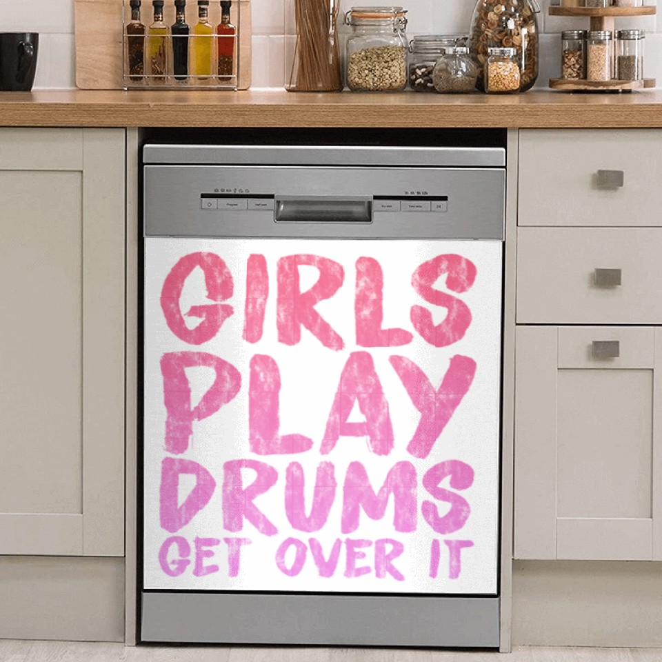 You are viewing an exclusive and elegant product Girls Play Drums, Get Over It 3 Dish Washer Covers For WHITE belong theme Dish Washer Covers at Printblur