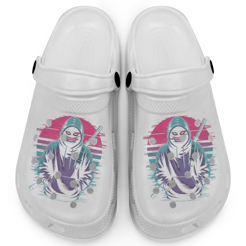 You are seeing a unique and impressive product Glitch Ninja Katana Streetwear Futuristic Clogs For Kids WHITE belong theme Clogs at Printblur