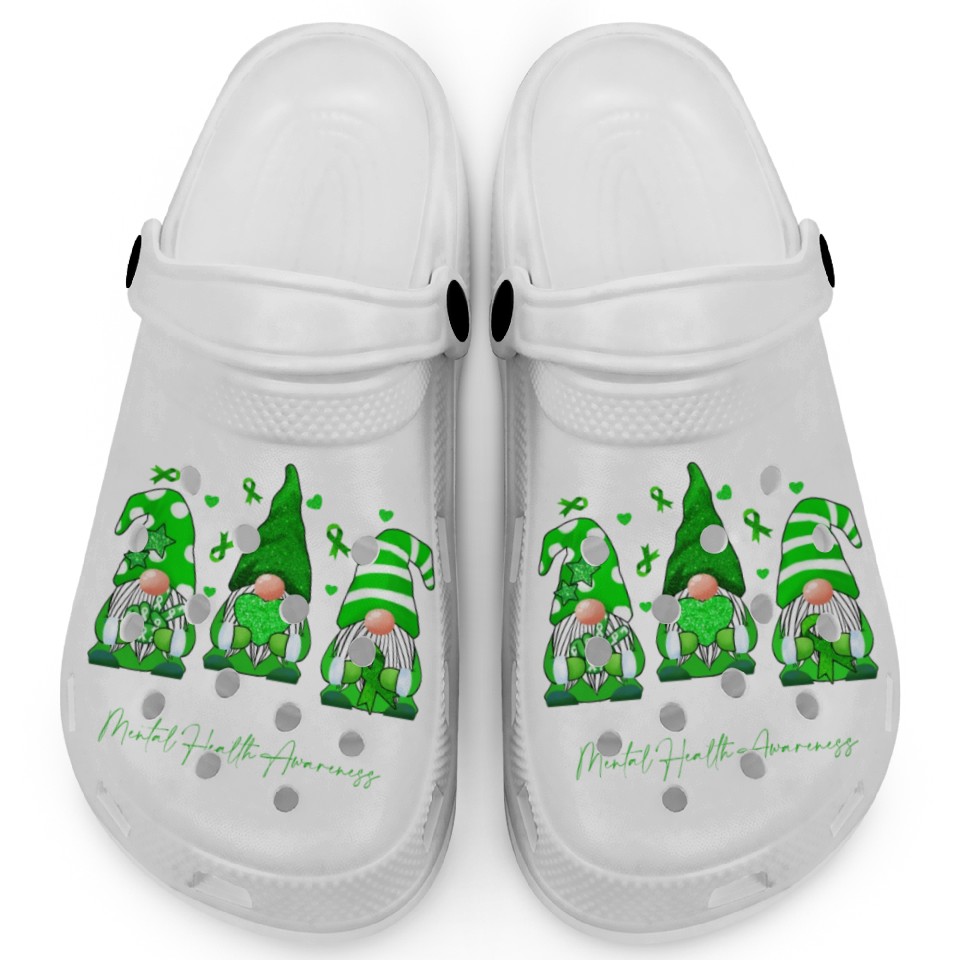 You are contemplating one of the best-selling products Gnome Fights Mental Health Matters Green Ribbon Clogs For Kids WHITE belong theme Clogs at Printblur