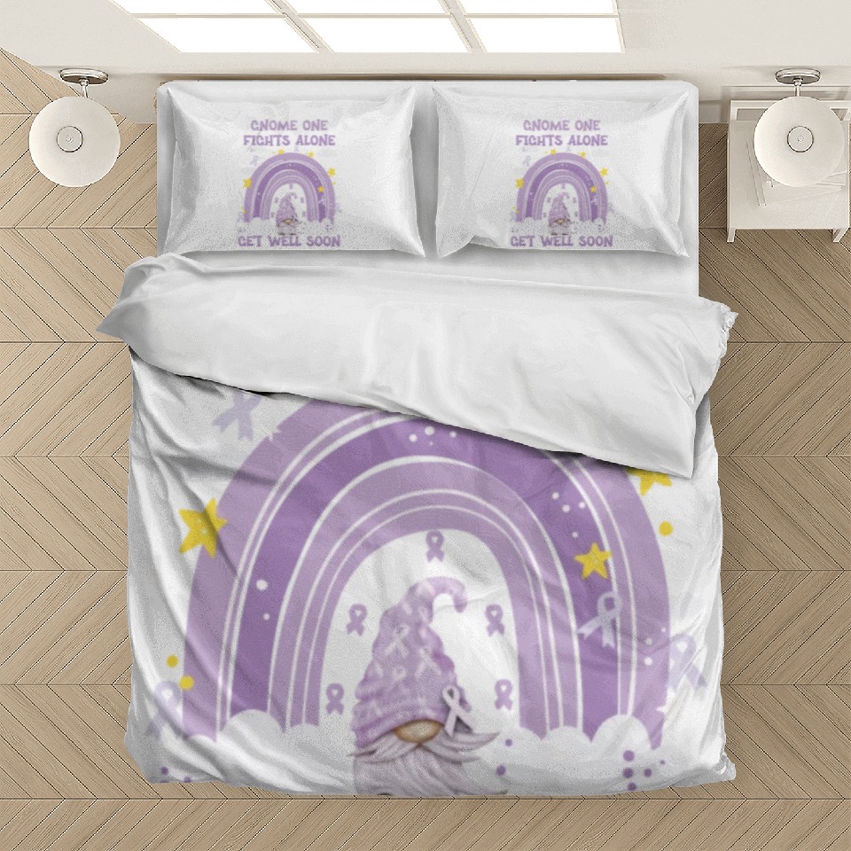 Own fascinating Gnome One Fights Alone Lavender | Fight The Cancer Bedding Sets or see more Bedding Sets products now from Printblur shop to enjoy your shopping time!