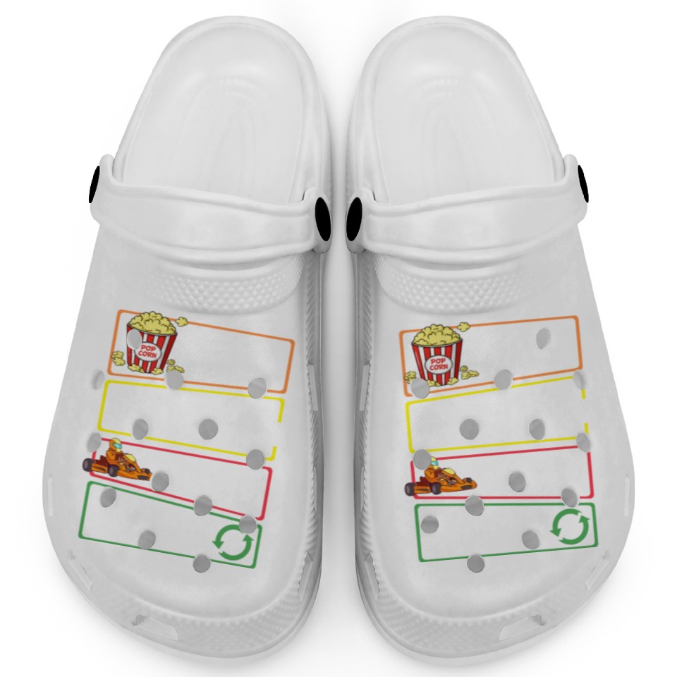The item hot trend you're looking at is Go Kart Racing Indoor Karting Racer Electric Clogs For Kids WHITE belong theme Clogs at Printblur