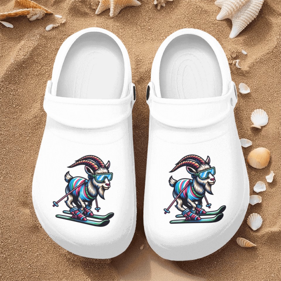 The product unique design you searched for is Goat Skiing Downhill Winter Sports Design Nurse Clogs For Men WHITE belong theme Nurse Clogs at Printblur