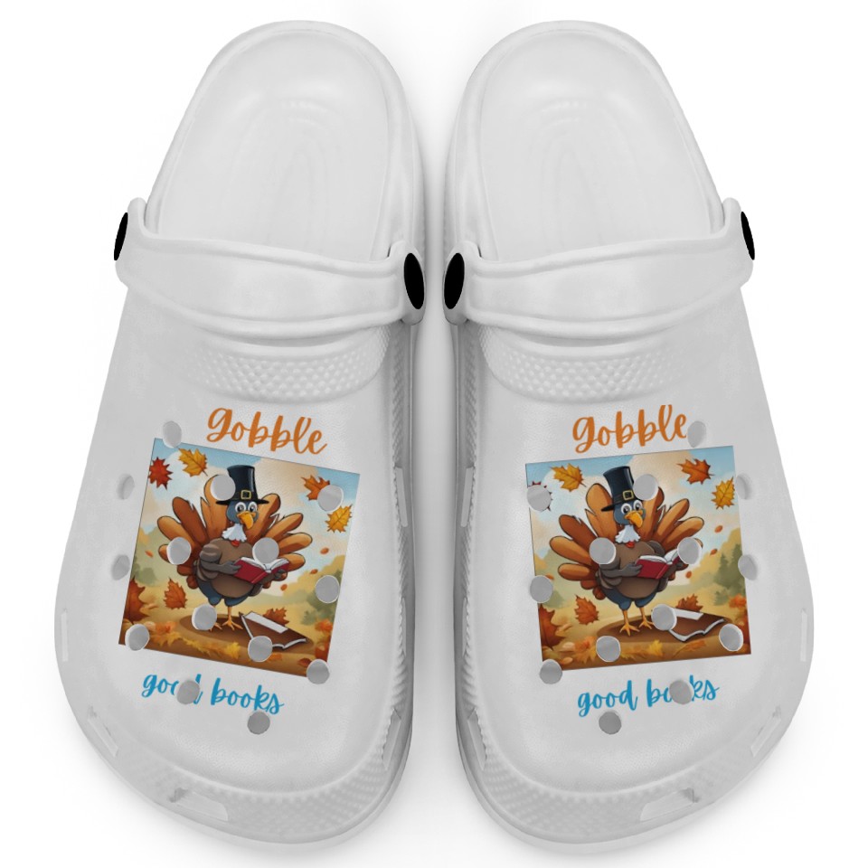 Shop for attractive Gobble Good Book Thanksgiving Library Turkey Fall Clogs or see more Clogs products on https://printblur.com right now!