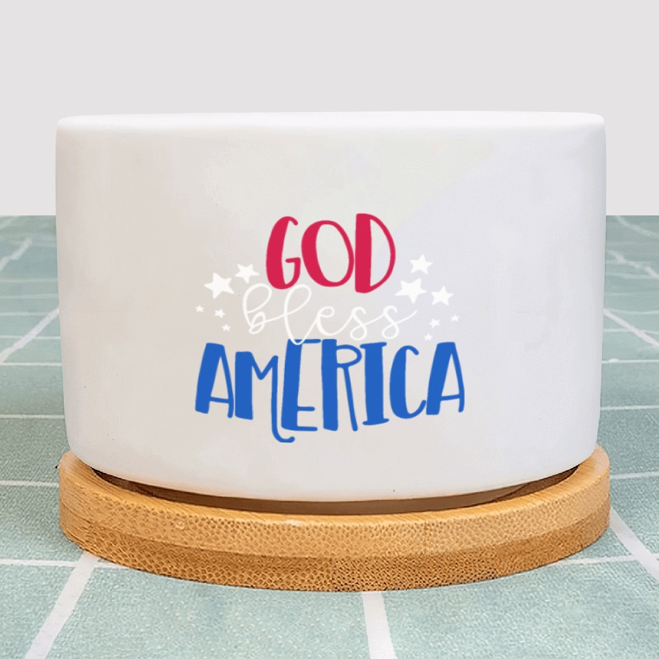God Bless America Patriotic American 4th of Julygo Plant Pots