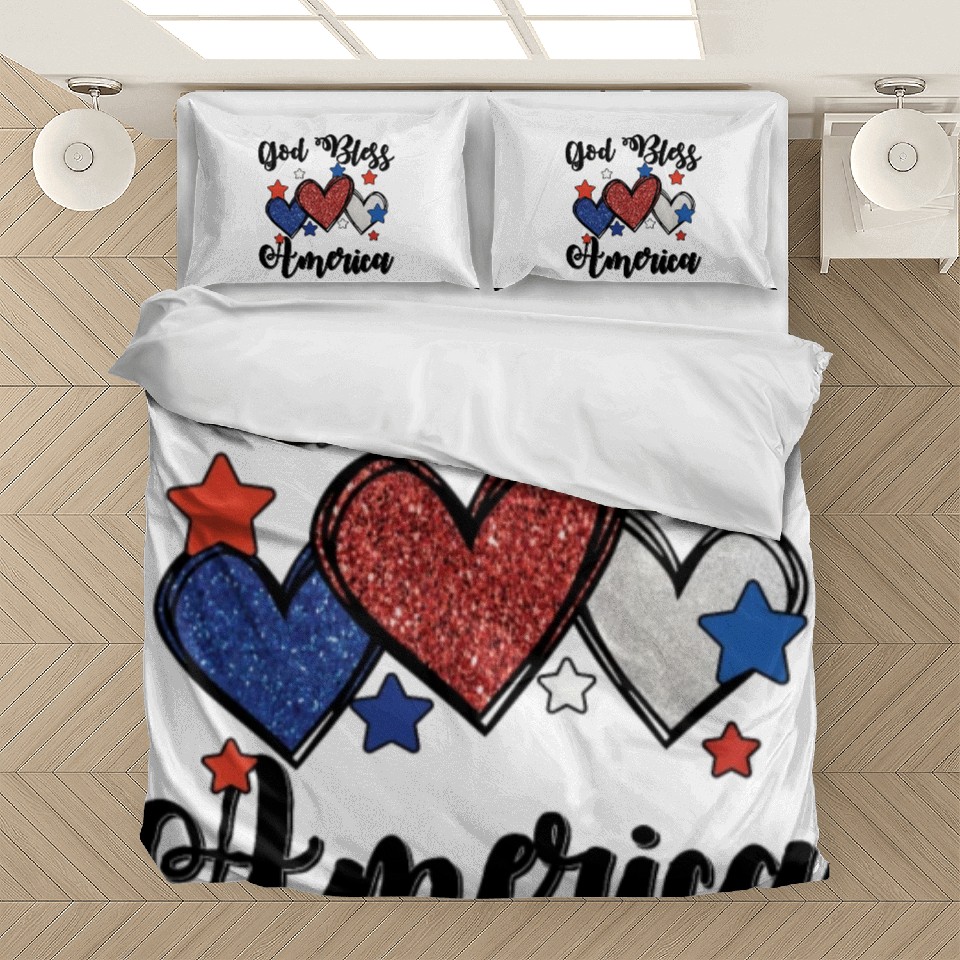 Own fascinating God Bless America Patriotic USA Hearts 4th of July Bedding Sets or see more Bedding Sets products now from Printblur shop to enjoy your shopping time!