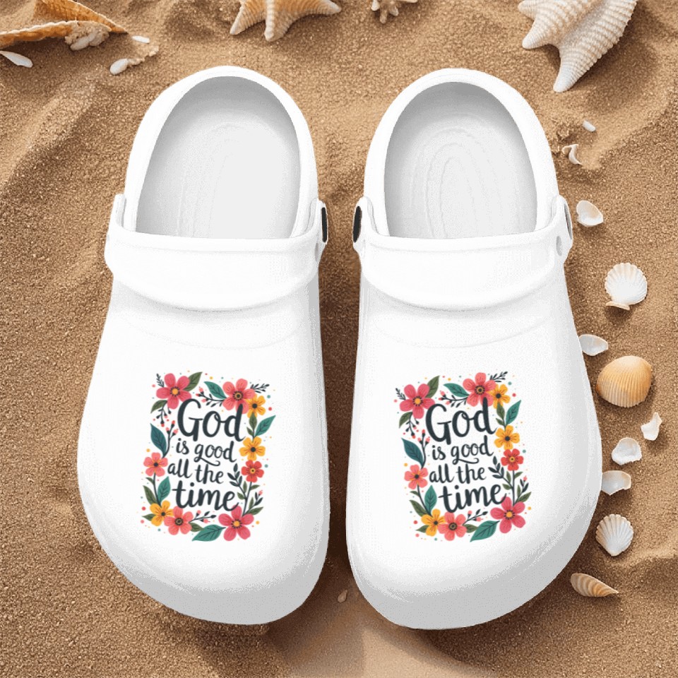 God Is Good All The Time Christian Quote Flower Nurse Clogs