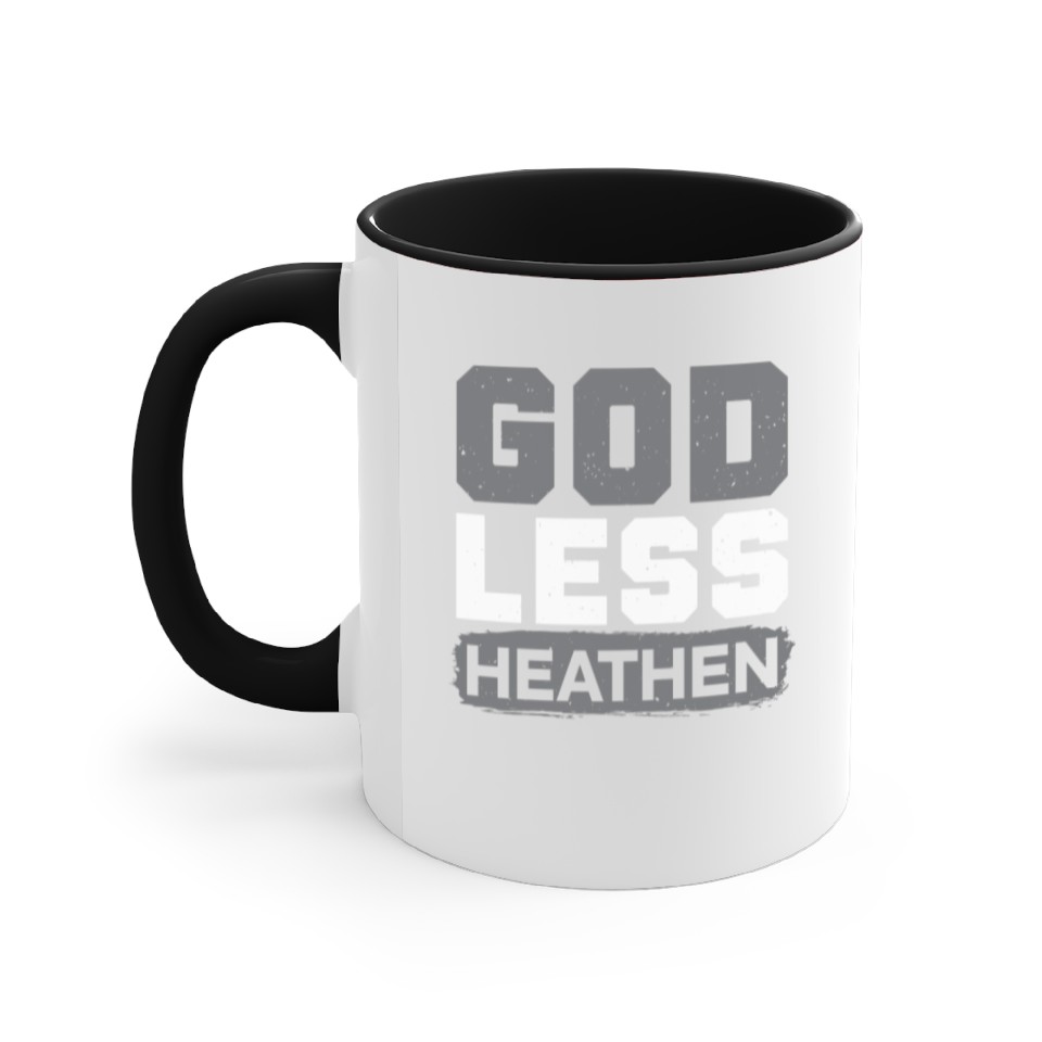 You are shopping for a stunning and trendy product Godless Heathen Anti-Religion Agnostic Atheist Accent Mugs For Black belong theme Accent Mugs at Printblur