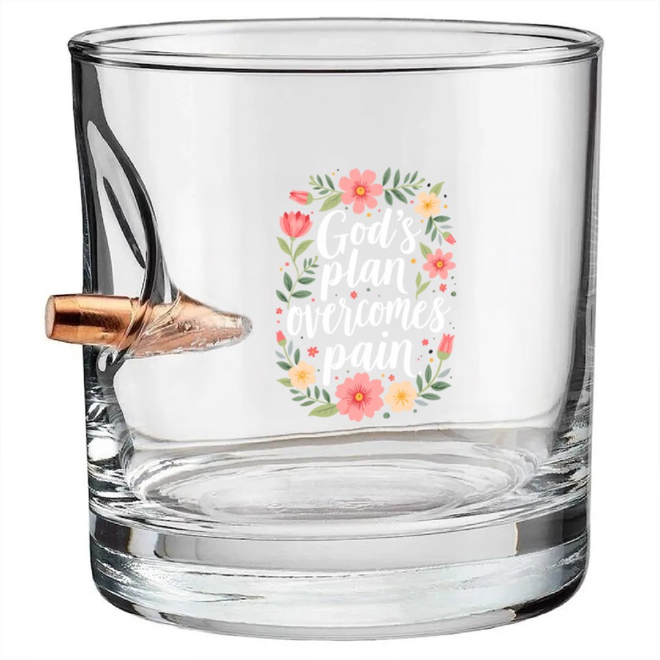 Buy eye-catching God's Plan Overcomes Pain - Christian Quote Bullet Whiskey Glasses or see more Bullet Whiskey Glasses products at Printblur shop now to explore many surprises from our shop!