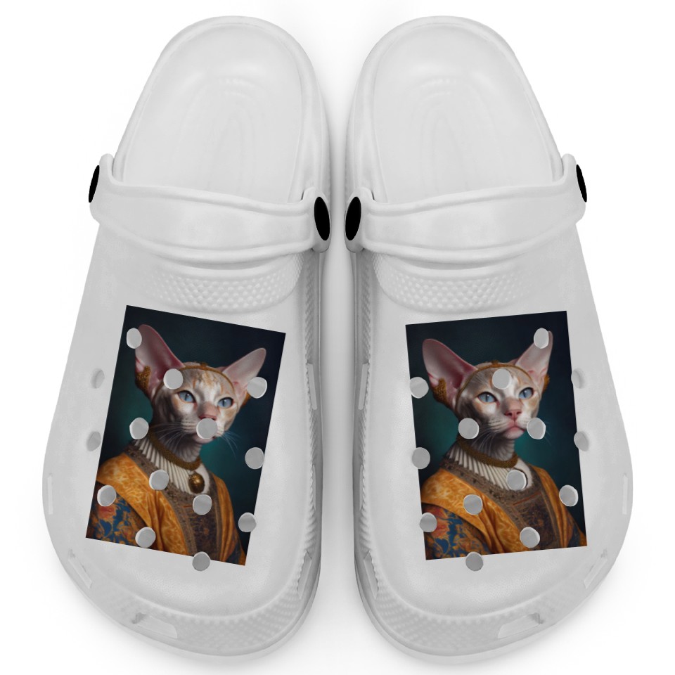 You're looking at the eye-catching product Gold King Devon Rex Cat Breed Portrait Royal Renai Clogs For Kids WHITE belong theme Clogs at Printblur