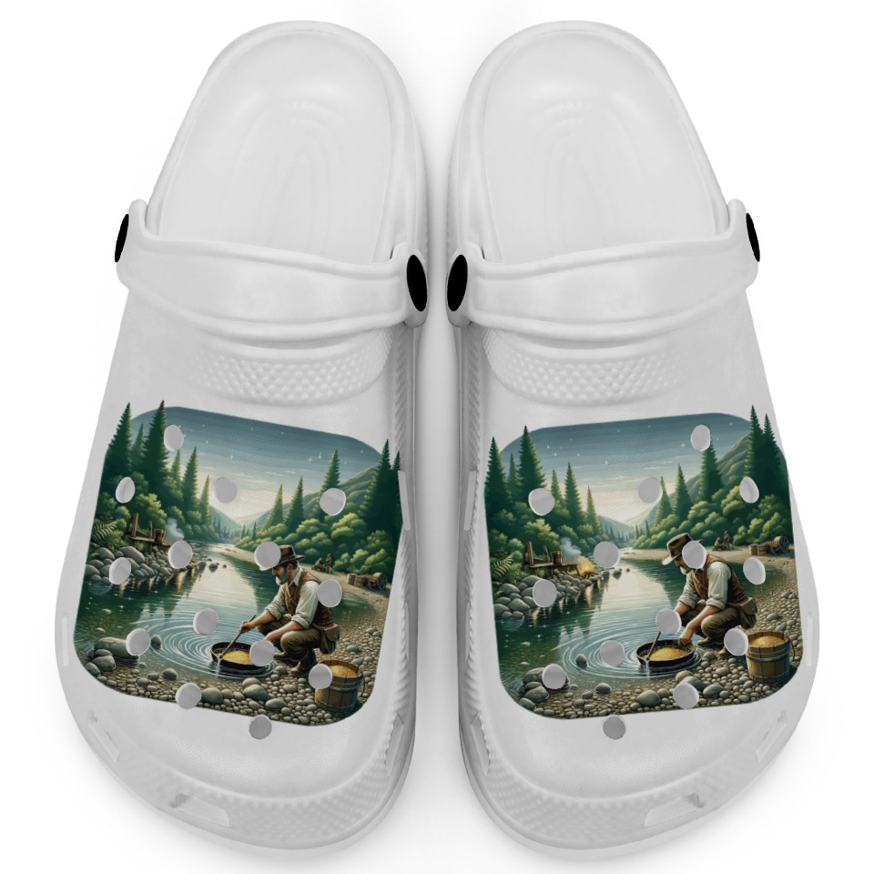 You are contemplating one of the best-selling products Gold Prospector by the River in a Serene Forest Clogs For Kids WHITE belong theme Clogs at Printblur